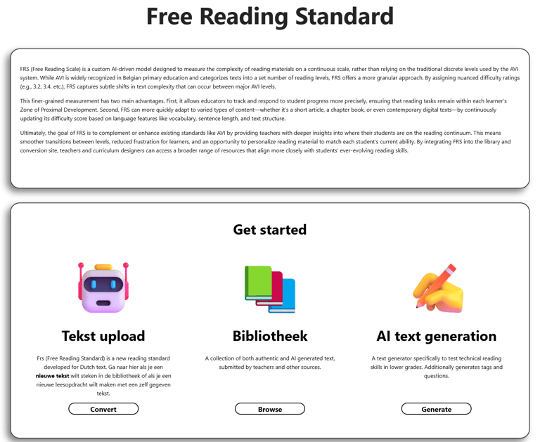 FRS is a comprehensive tool designed to simplify reading-level assessments and text generation for your students. Deploy it on your Microsoft tenant to:
